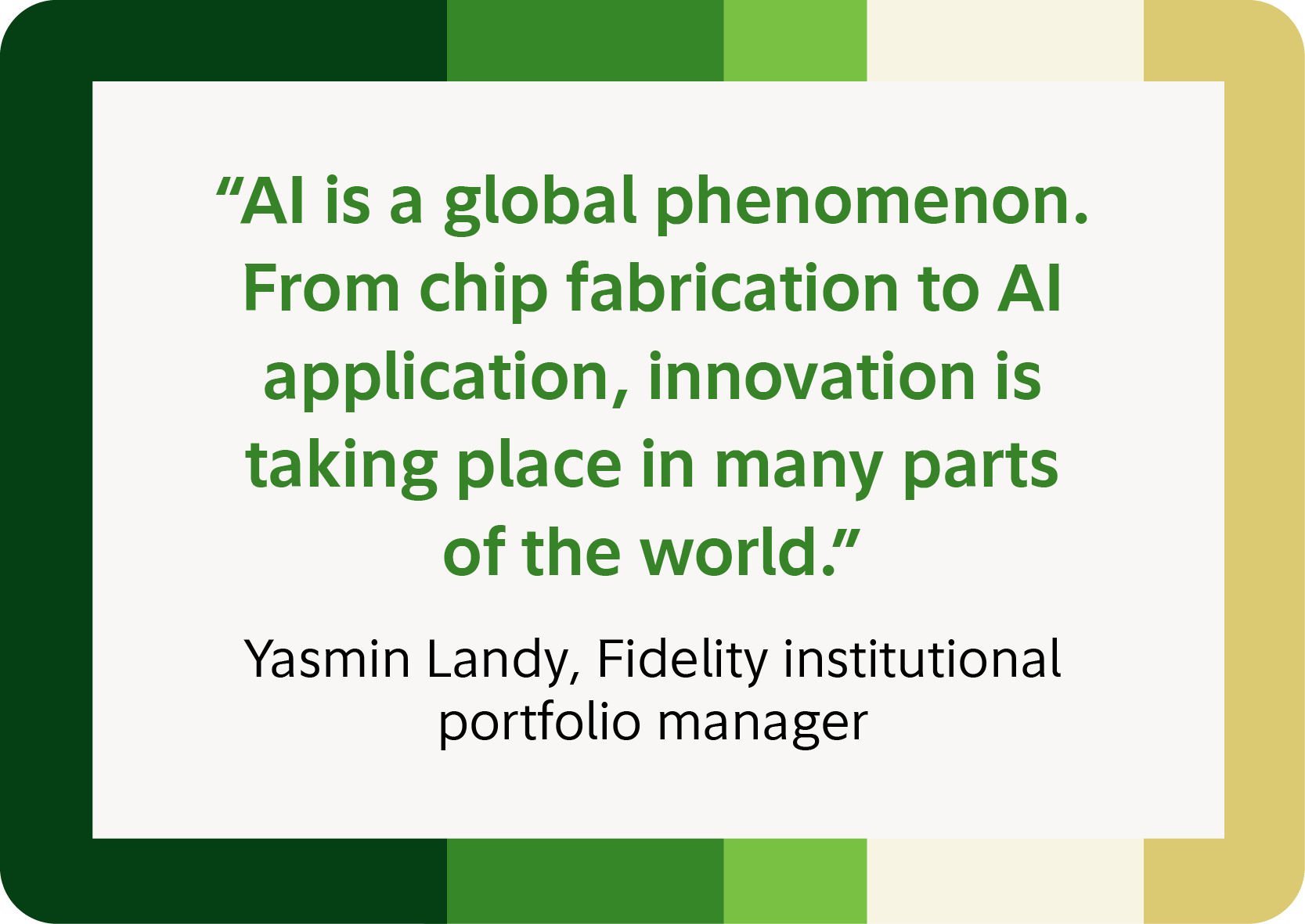 “AI is a global phenomenon," says Yasmin Landy, a Fidelity institutional portfolio manager focusing on international stocks. "From chip fabrication to AI application, innovation is taking place in many parts of the world."